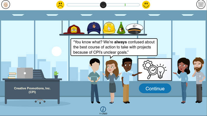 This concept project is a scenario-based e-learning experience designed to help new managers boost team morale and increase sales by effectively applying the appropriate leadership style.